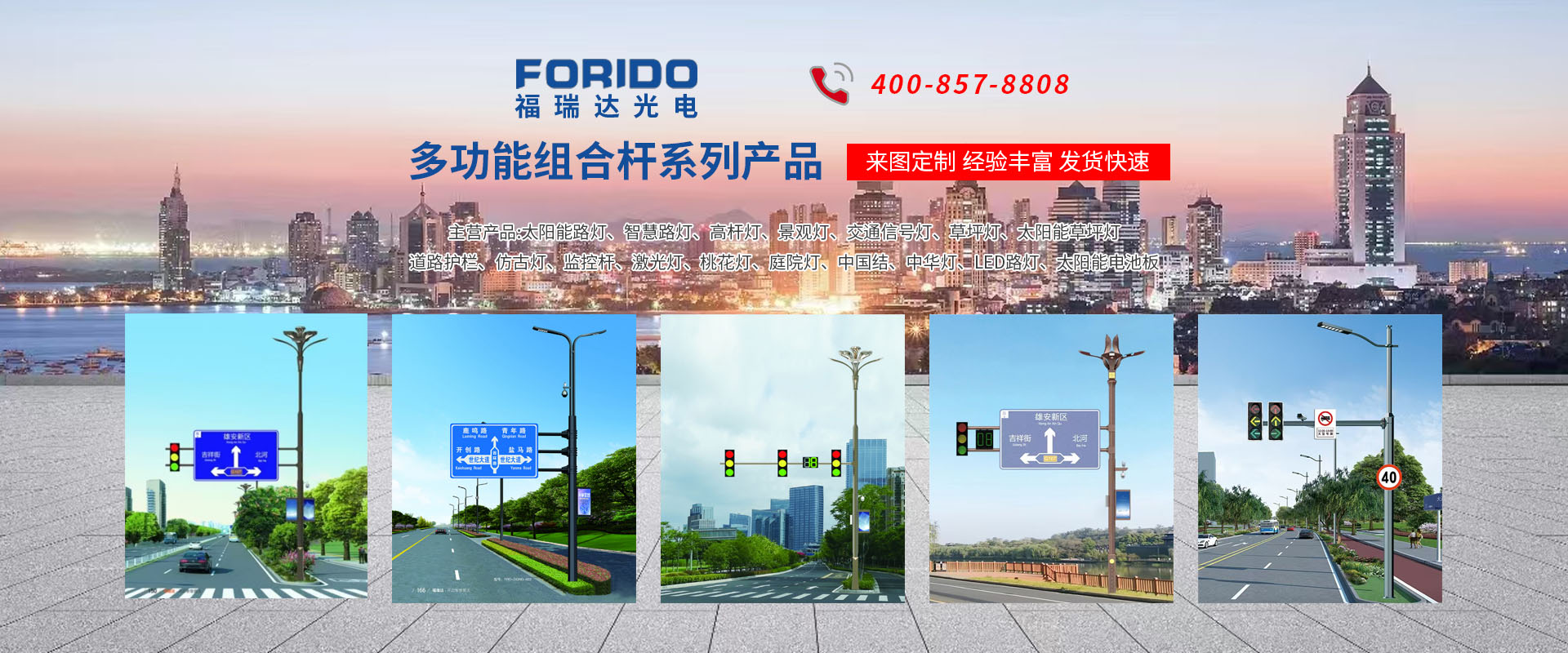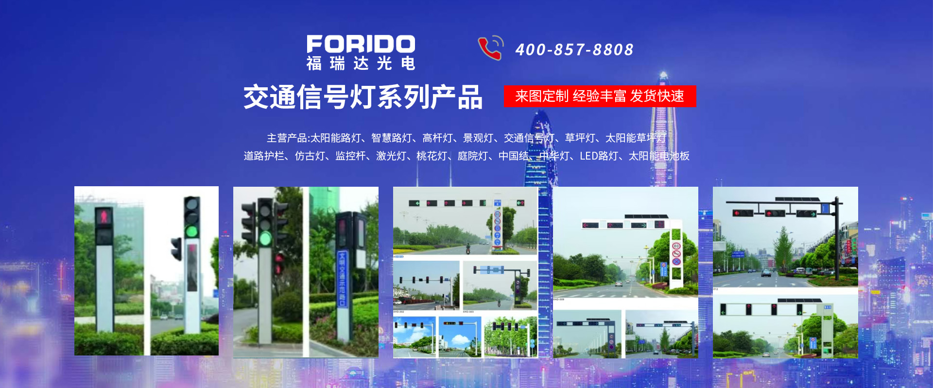 揚(yáng)州福瑞達(dá)光電科技有限公司位于淮左名都?xì)v史文化名城、中國(guó)路燈制造基地?fù)P州市北郊菱塘工業(yè)園,公司占地面積76000平方米,注冊(cè)資金10518萬(wàn)元,擁有高級(jí)技術(shù)嫻熟的員工280多人,擁有大型折彎?rùn)C(jī)、激光切割、數(shù)控注塑機(jī)、壓鑄機(jī)、自動(dòng)埋弧焊、氣焊、彩色粉末靜電噴塑等大型自動(dòng)化設(shè)備,我公司是一家集設(shè)計(jì)、研發(fā)、生產(chǎn)、銷售、施工安裝服務(wù)為一體的戶外交通照明產(chǎn)品制造商,主要生產(chǎn)智慧路燈、太陽(yáng)能路燈、LED路燈、高桿燈、景觀燈、交通信號(hào)燈、交通標(biāo)志牌、通信鐵塔、路跨鋼結(jié)構(gòu)、公交站臺(tái)、太陽(yáng)能光伏組件、景點(diǎn)亮化、樓宇亮化工程的設(shè)計(jì)施工等。公司秉承開(kāi)拓創(chuàng)新、銳意進(jìn)取、精誠(chéng)服務(wù)的企業(yè)精神,堅(jiān)持以“誠(chéng)信為本、技術(shù)為先、服務(wù)是金”的合作理念,我們憑借先進(jìn)的制造工藝、優(yōu)質(zhì)的產(chǎn)品質(zhì)量、合理的市場(chǎng)價(jià)格和完善的售后服務(wù)贏得了廣闊的市場(chǎng)和客戶的信賴?! ∥夜疽淹ㄟ^(guò)ISO9001質(zhì)量體系認(rèn)證、ISO14001環(huán)境管理體認(rèn)證,CQC產(chǎn)品認(rèn)證,中國(guó)節(jié)能產(chǎn)品認(rèn)證,通過(guò)“CCC”強(qiáng)制性產(chǎn)品認(rèn)證,具有市政總承包,照明,交安,設(shè)計(jì)等資質(zhì)···